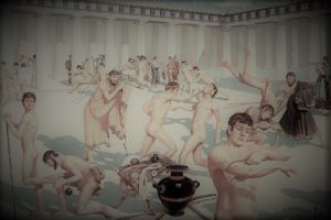 In deze school, waar men trainde voor de Panhelleense Spelen en elkaar ontmoette, werden openlijk homoseksuele activiteiten bevorderd. Ook was het normaal dat de atleten naakt sportten. Je kunt je voorstellen dat dit ook veel Joden tegen de borst stuitte. Gymnasion betekent ook: plaats om naakt te zijn.