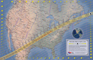 Want opnieuw zal er in Amerika een zonsverduistering te zien zijn. Dit keer op 8 april 2024, dat is 7 jaren na die van 2017 en ook zal deze te zien zijn van west naar oost, maar de lijn van de eclipse loopt nu anders. Nu loopt de lijn van linksonder naar rechtsboven. Zet je de twee eclipselijnen op elkaar, krijg je een soort kruis, een soort X. Zou God hiermee willen zeggen: “Ik reken af met de heidenvolken die in Amerika wonen? Ik zet er een kruis door?” Nu hebben wij niet de intentie om voor God te spelen of te denken. Toch is dit zeer opmerkelijk, als je de twee eclipselijnen op elkaar zet. Het past wel in het tijdsbeeld dat de opname in 2017 plaatsvindt en daardoor de wederkomst van Jezus Christus in 2024.