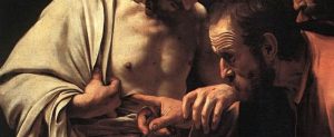 En na acht dagen waren Zijn discipelen weer binnen en Thomas was bij hen. Jezus kwam terwijl de deuren gesloten waren, en Hij stond in hun midden en zei: Vrede zij u. Daarna zei Hij tegen Thomas: Kom hier met uw vinger en bekijk Mijn handen, en kom hier met uw hand en steek die in Mijn zij; en wees niet ongelovig, maar gelovig. (Johannes 20:26-27)